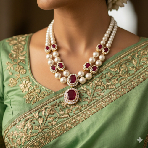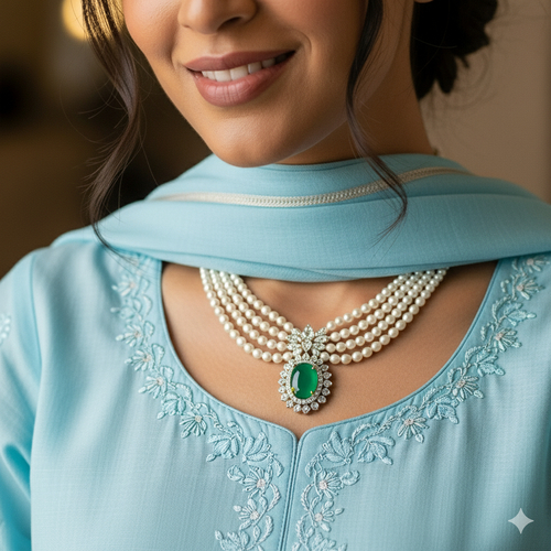 Pistachio– This yet another color can be taken as an option to wear with pearls. This not so traditional color looks so surreal with pearls that it is almost hard to resist ignoring.