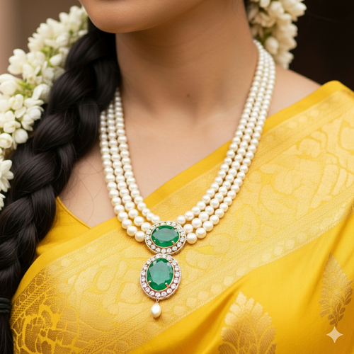 Match it with yellow– Yellow being a hot color goes perfectly with pearls as the subtleness of pearls balances this bright color. Its best to choose pearls with contrast color pendants, as they will add a nice color contrast to the yellow color outfit.