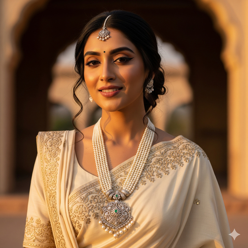 Pair it with white’s– Wearing pearls with any shade of white or off white is the best bet to look perfect. Or you can also match the color of the pearls with your outfit. For example use off white pearls with an off white or gold outfit. And white pearls with a white outfit for a subtle and elegant look.