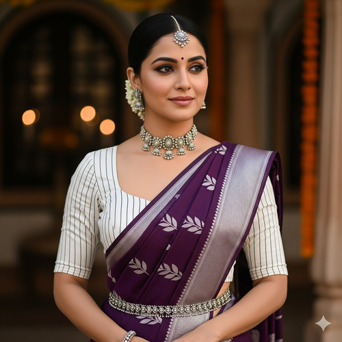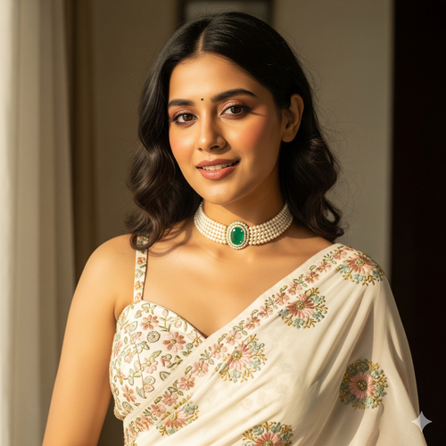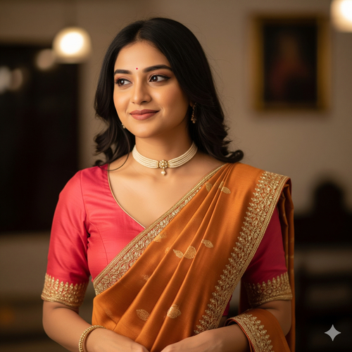 Statement neckpiece– Modern designs are perfect to wear with contemporary sarees. If you have a saree which is more on the modern lines, then wear a contemporary design with it.