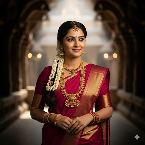 Temple jewelry– You must have at least one temple jewelry in your collection to go with your sarees. They come in different styles and sizes and what you want is something you can decide. So you can either choose a short or a long length necklace for yourself.