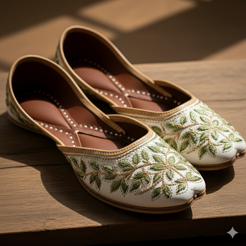 - Weddings & Festive Celebrations – Embroidered, beaded, or zardozi juttis complement lehengas, Anarkali’s, and sarees.