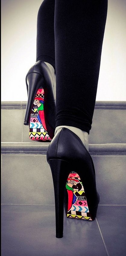 Painted sole– Simple heels can be painted at the sole area for them to give a peek-a-boo look. Paint them in colorful colors and rock the look by wearing a monotone ensemble from head to toe. This way your heels will stand out in a way that nobody could miss looking at the beautifuly painted thing.