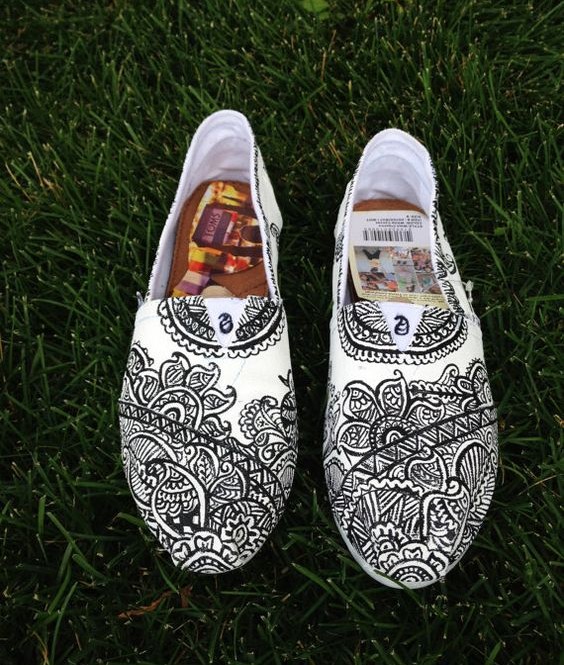 Inspired by heena– Heena designs have been an inspiration since ages for many wearable art projects. Choose a beautiful design for your shoes and paint them in your favorite color. Choose black color for authentic heena look.