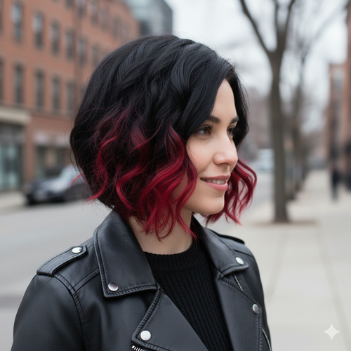 All red– If you choose for muted shades like cranberry red, then you can definitely use this subtle shade to cover your entire hairstyle.