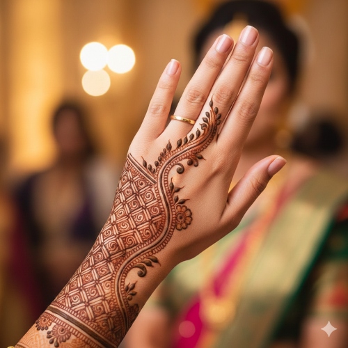 Leaf design with filling– A branch of leaf covered with other traditional designs on one side, gives a abstract look. It is a good design for those who want simple design but with a little bit of filling too.