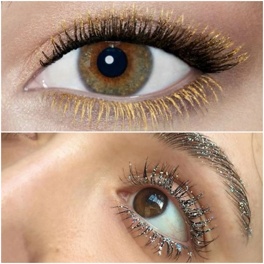 – Glitter mascara for the perfect party look. They act as a highlighter, use them over black mascara or just as is.