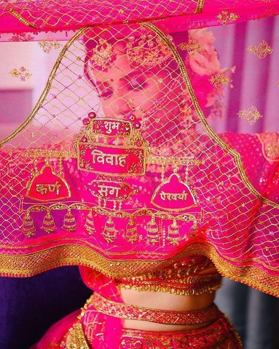 Get your names itched– How about using your names on your dupatta. Plan the entire layout of your embroidered duppatta beforehand so that the names are visible, or else people might miss seeing it if the placement of the embroidered names is not appropriate. If you have chosen to use your dupatta as a front veil then you can get the names embroidered on the front. The best would be to use it all over like a border.