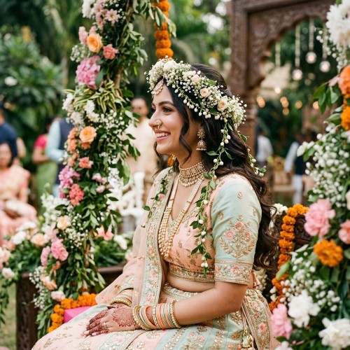 Fresh Flowers– If you are looking for something totally different then choose fresh flower headbands like this one. They come in different designs and patterns and you have an option of choosing your colors in the form of fresh flowers like real roses, mogra, orchids etc.