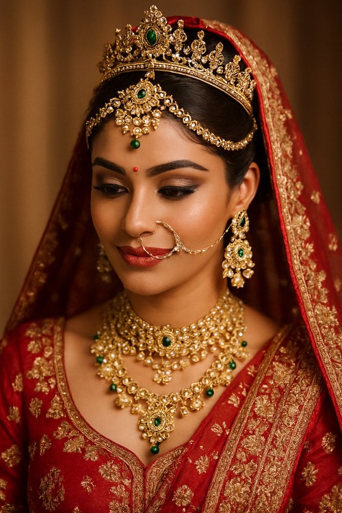 Beaded Crown Tikka– If you wish to skip the metallic and shiny ones, then try beaded strings for your crown Tikka.