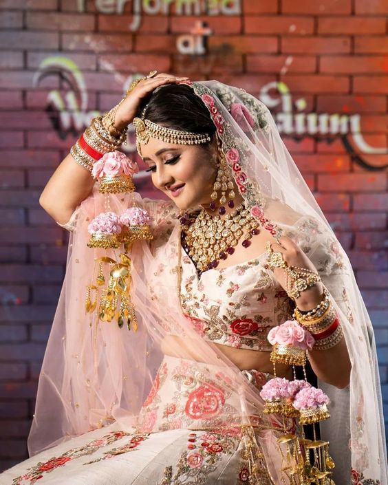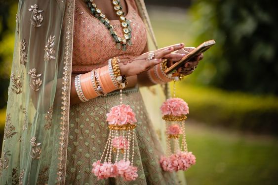 Floral buds– If you want something fresh with the real flowers then this kaleerein style is for you. Made from real roses, you can match the colors of your lehnga with these flowers. You can also choose to wear it only on one hand unlike the traditional style of wearing it on both the hands.