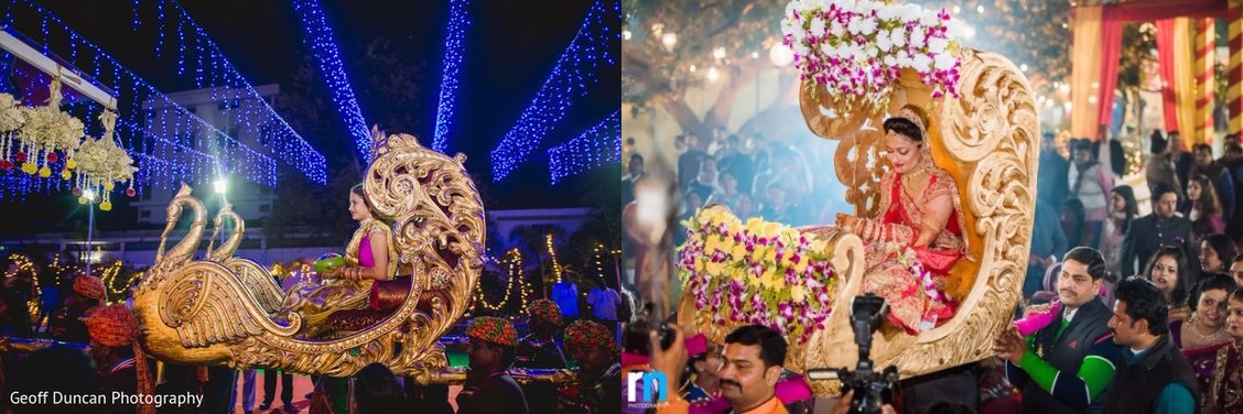 In India traditionally a bride enters the function area seated on a palki, and nowadays there so many design options to choose from.