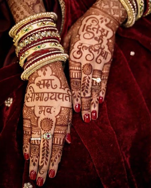 Mehndi– You can add the saying to your bridal mehndi. Bridal mehndi done in this style looks simply beautiful and surreal. You can also add the name of the couple in the bridal mehndi. Just make sure that the design is bold enough to be seen easily, and therefore its best to make it on the back of the hand.