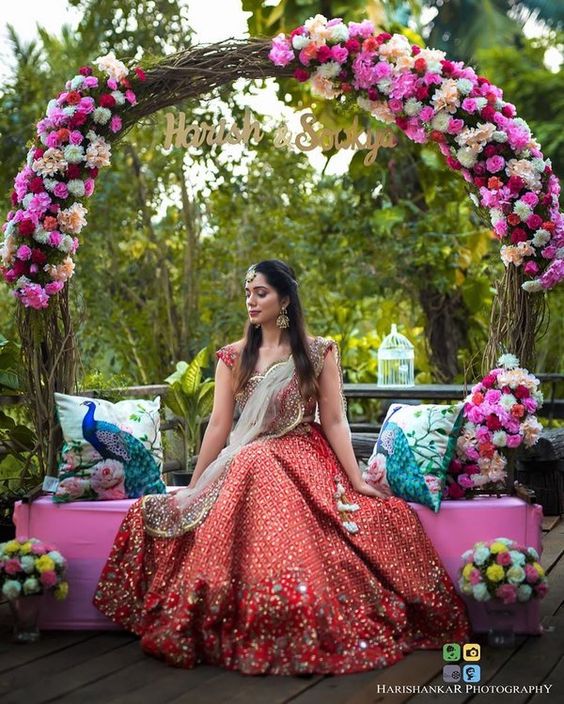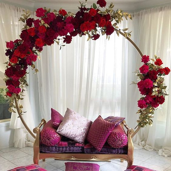 Decorative rings are very much in trend nowadays in wedding decor. It can be used as a seating arrangement for the bride, or can also be used as a photo booth to click pictures. And it can also suffice both the purposes as well at a go. So if you are a bride looking for different design options of this decor style then here you go…..