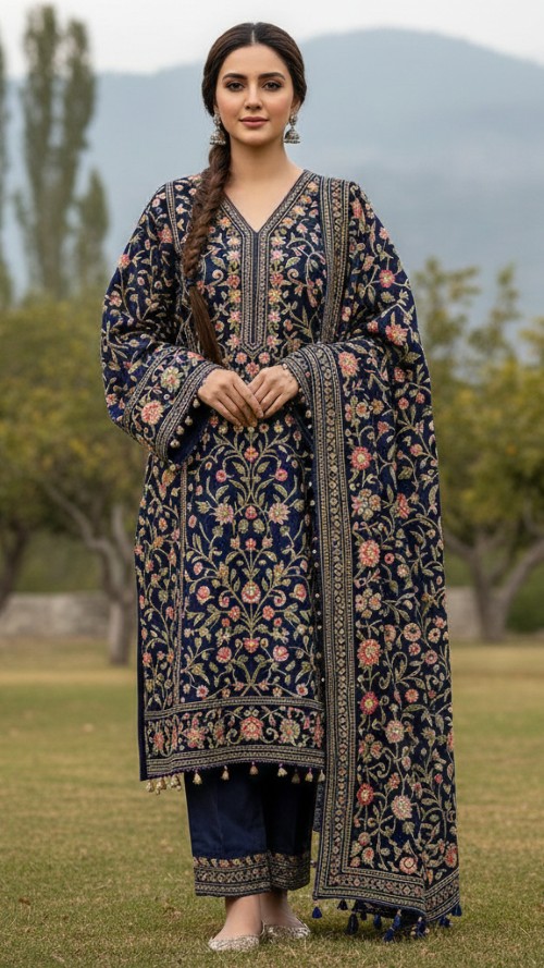 Kashmiri embroidery is fine work executed on cotton as well as synthetic fabric. The thread used is from fine wool of the pashmina goats, handspun by the old ladies of the village. Dress materials, shawls, covers, bags are all exquisitely decorated with fine hand embroidery mostly using chain and satin stitches for filling up the motifs. The designs are usually flowers, leaves and other inspiration drawn from nature.