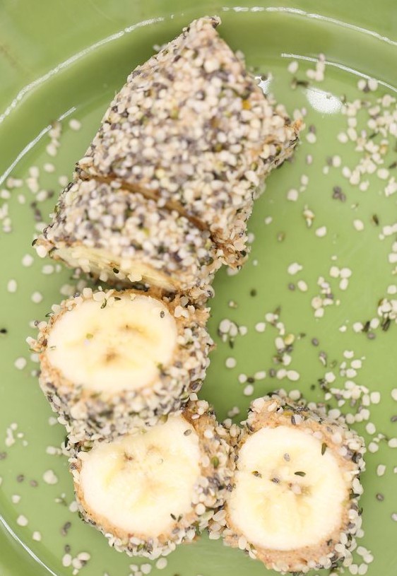 Banana and nuts sushi– The recipe is same as others, just replace the last coating with Chia and Hemp seeds for a nutty flavor.
