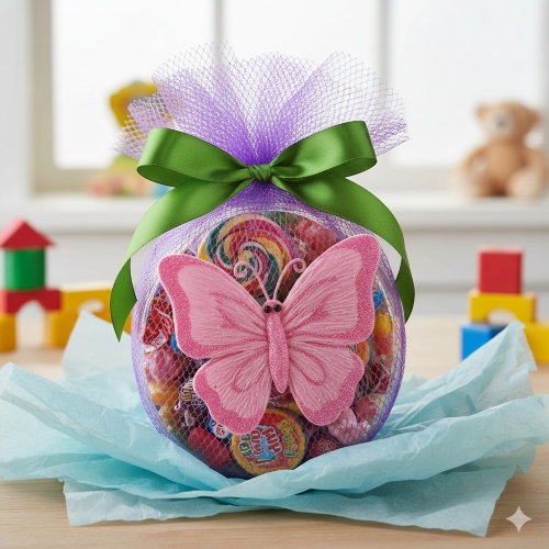 Sweet Tooth ideas– If you want to keep it simple and sweet and high on glam then this is a perfect idea. Pack candies, chocolates, jellies in a plastic box and embellish the packet with a large butterfly at the top. Kids will love this as they like colorful and fancy things.
