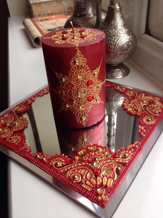 Give some light– Gifting lights or lamps is probably an apt thing for Diwali, but how about creating one yourself. You can create and customize so many ideas with just few basic things. The design below can be done with just a simple glass jar, all you need is a tape and color of your choice. Wind the tape around the jar in a pattern of your choice and then paint it in your favorite color. Once it’s completely dry remove the tape and the candle jar is ready. You just have to place a candle inside the jar to use it.