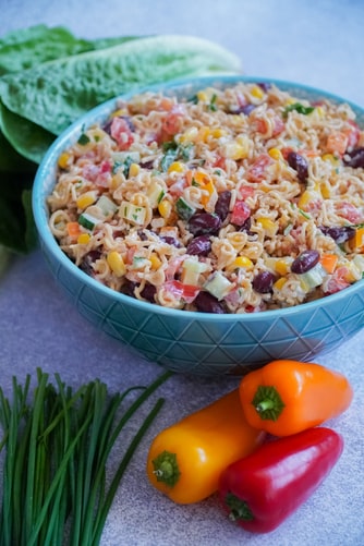Pasta Mayo Salad– Well you can take veggies like sliced onions, carrots, capsicum, bell pepper for this recipe. In a bowl add boiled pasta and veggies of your choice. Now add mayonnaise, powdered sugar, salt and pepper to this recipe and mix everything nicely.