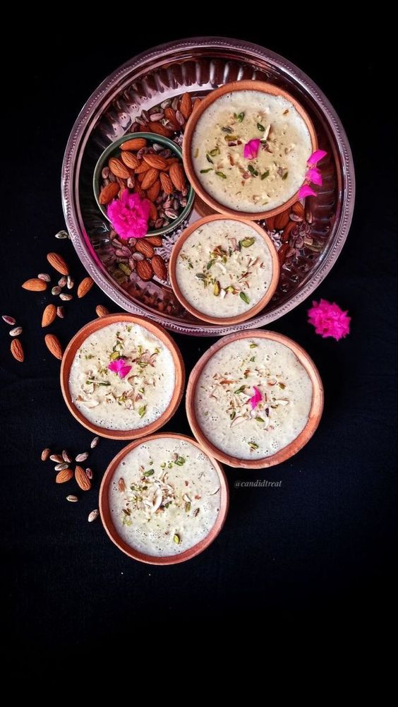 Kheer– Pressure cook samak rice with milk for a few whistles. Once cooked remove the pressure lid and add cardamom powder, sugar and a 1 spoon saffron milk. Mix everything and the kheer is ready. You can also ghee roast a few dry fruits and use this for kheer.