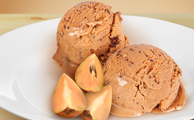 Chico Milkmaid ice-cream– De-seed and puree 250gm chicoo in a blender. In a bowl combine 1/2 tin of milk-made with 200ml milk and 250gm of fresh cream, mix all the ingredients well and freeze for 2 hours.