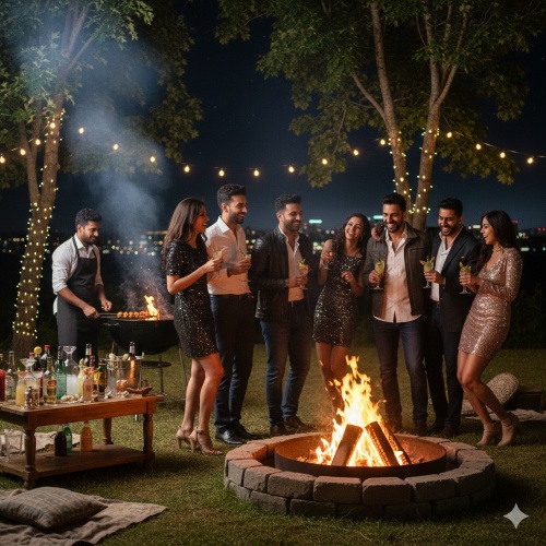 Bonfire party– Nothing like enjoying winter chills with the warmth of bonfire….Well this would be a perfect party idea for chilly nights which most of us are experiencing nowadays. You can play to the old Bollywood music to accompany your drinks, and a barbeque on the side would be a perfect company as you will be able to cook your food right away in front of you.