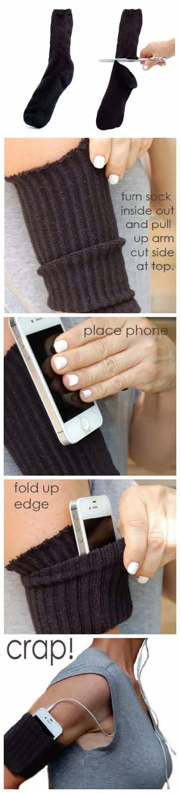 Phone armband– Create an interesting armband for your phone by cutting it into a square. You can now easily carry your phone while doing exercise or jogging. You can also carry your ipod like this and play music while doing workout.
