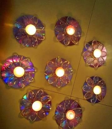 Diya holder– An old CD makes a perfect base for making decorative diya holders which you can make by sticking different colored stones, pearls, beads etc.