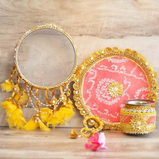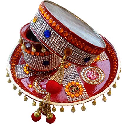 Karwachauth is around the corner and most of you must be geared up for this occasion. After all it is one of the most important festival for the newlyweds. And though you must have thought of what to wear and how to look but wait a second, have you decided on how the pooja thali should look on this special occasion. Well a pooja thali should not be plain and simple when you yourself are going to look million dollars on this day. And since there are so many design varieties available we bring to you a few design options to choose from….You can also match the whole concept with the dress which you are going to wear on this day.