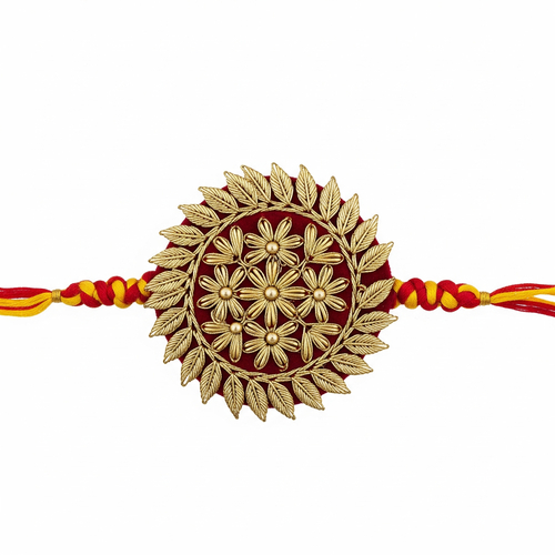 Wood button-Wooden button is a great base for making Rakhi. Just pick one in the size you want and stick a decorative flower piece on the top of it. For the string you can braid different colors of threads together or you can also use colored jute for a natural look.