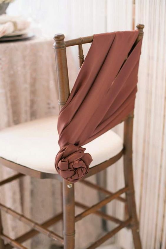 Broach– The drape on the chair can be fastened with a broach, a nice chunky piece can really uplift the look of the entire drape. You can also use the broach with other elements like a bow or flowers or any other design element to make a great setup.