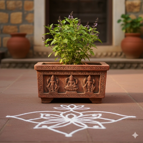A Tulsi plant is not only a sacred plant but has many medicinal values too. Most of the Hindu families still place it at their home to seek blessing of the goddess Tulsi, which is said to bring peace and harmony at home. Watering the plant every morning and placing a diya near to it not only has religious benefits, but this practice also brings peace and calmness to the one following the ritual. In many homes we still see a rangoli made daily in front of the Tulsi plant, but if you want to decorate it some other way then we have got ideas for you.