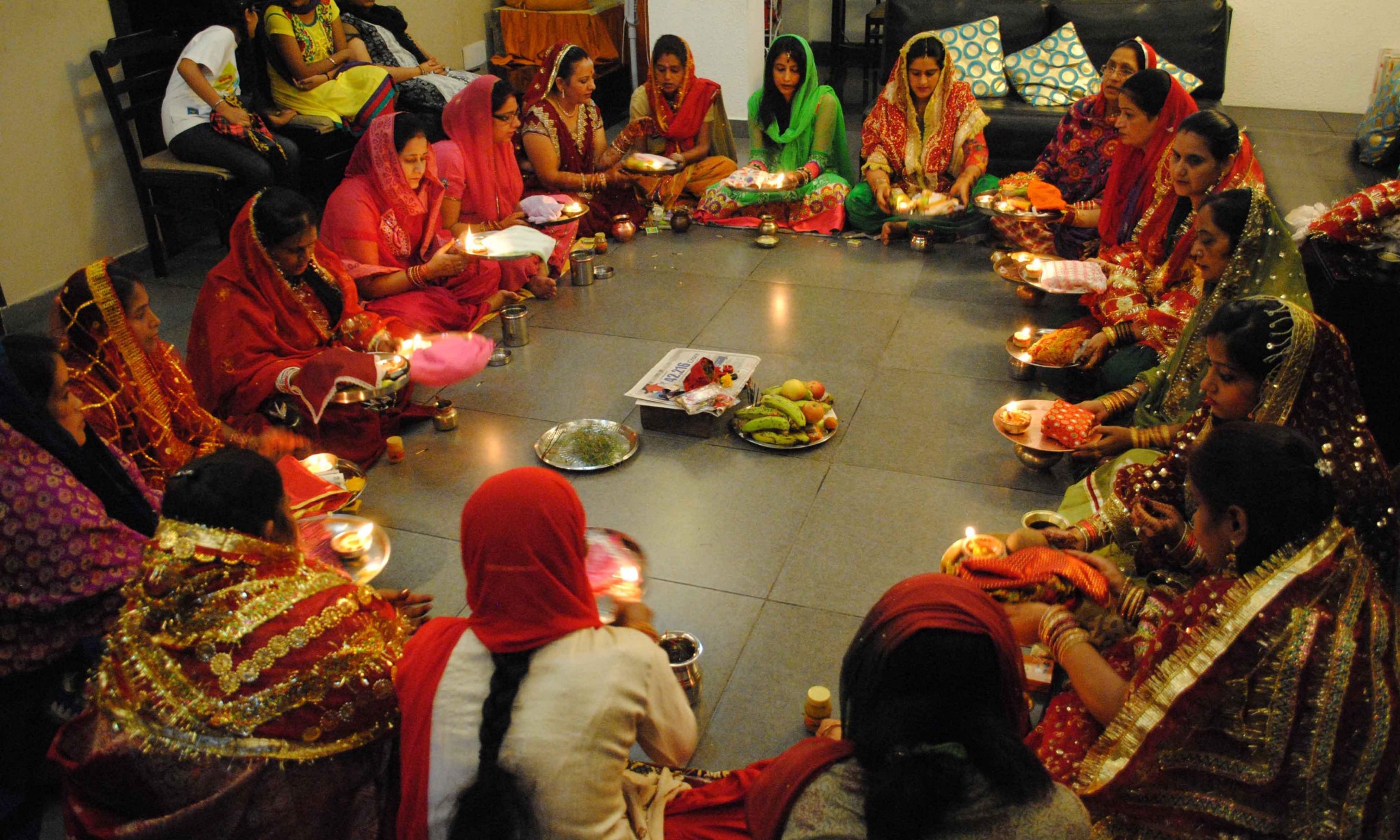 Karwa Chauth fasting is done during Krishna Paksha Chaturthi in the Hindu month of Kartik and according to Amanta calendar followed in Gujarat, Maharashtra and Southern India it is Ashwin month which is current during Karwa Chauth. However, it is just the name of the month which differs and in all states Karwa Chauth is observed on the same day. Karwa Chauth coincides with Sankashti Chaturthi a fasting day observed for Lord Ganesha. Married women worship Lord Shiva and His family including Lord Ganesha and break the fast only after sighting and making the offerings to the moon. The offering of Chandan, Rice, Flowers and most importantly water is offered to moon after which women use Chalni ( a see through wired vessel) to see their husbands through it. At the end the fast is breaked after the husband offers his wife drinking water. The fasting of Karwa Chauth is strict and observed without taking any food or even a drop of water after sunrise till the sighting of the moon in the night. After that they can have food. A special pooja is done in the evening, before sunset where a group of ladies gather with their Thalis or plates decorated with lamps and prasad and read the Karwa Chauth Vrat Katha, in simple words the ancient story and belief behind keeping this fast.