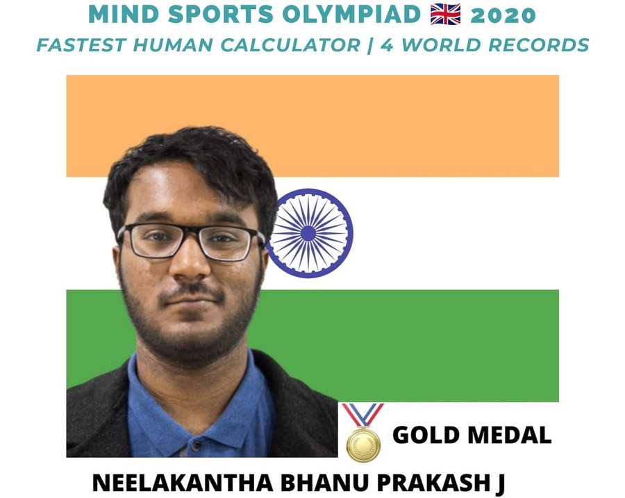 Neelakanta Bhanu Prakash, a 21-year-old Hyderabad boy has won the title ‘World’s Fastest Human Calculator’. He has won first-ever gold for India in Mental Calculation World Championship at MSO. The championship was held virtually on August 15 with total 30 participants from all around the world.