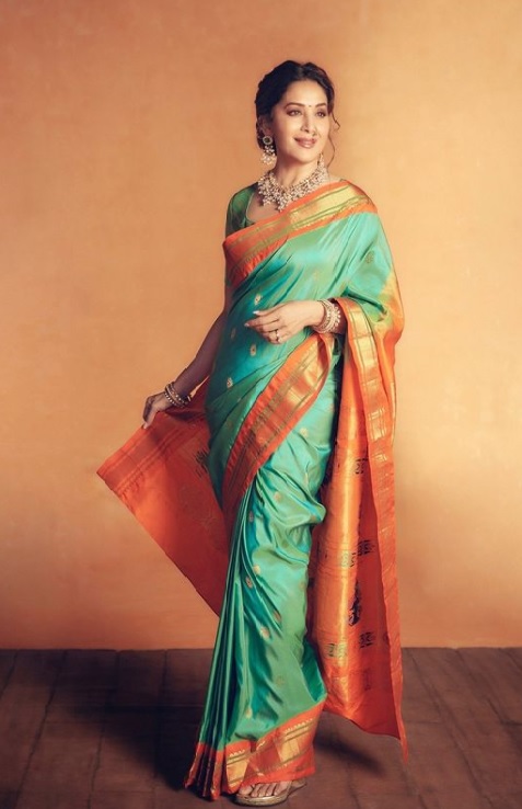 Madhuri Dixit is the epitome of elegance and style. She never fails to look gorgeous yet subtle with her charming looks. And she definitely proves to be matchless amongst her peers when it comes to dressing in an Indian wear like a saree. Here are a few of her traditional saree looks which you can take inspiration from for your wardrobe……