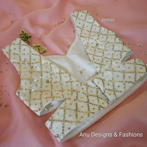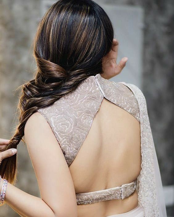 Pair it up with jewelry– You can also use some sort of broaches or a jewelry piece in your chain detailing to give a jeweled look to the blouse. Remember to use a jeweled piece which best matches your outfit.