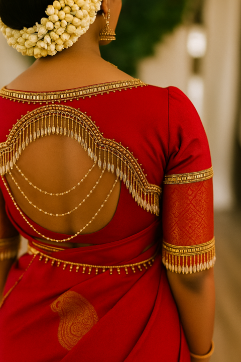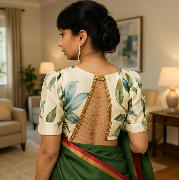 This article is for those people who are always looking for new design ideas for their blouses. And more than the front necklines, its the back necklines and the back neck details which makes the design look more appealing. And though there are many ways to ornate the blouse like embroidery, patchwork etc. but using chains to embellish the blouse is something which makes the outfit look more than just interesting. So here are some ways to incorporate chains in blouse detailing.