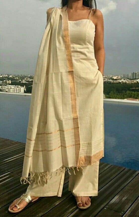 Plain Mangalgiri fabrics in cotton are so elegant and classic. Made in Mangalgiri, Andhra Pradesh, this handloom fabric comes in different colors and are often done in shadow or double colored threads and have a peculiar golden border running on both sides of the fabrics. The elegance of these fabrics is hard to beat. Here are a few ways to style your traditional kurta salwar wardrobe with this fabric….
