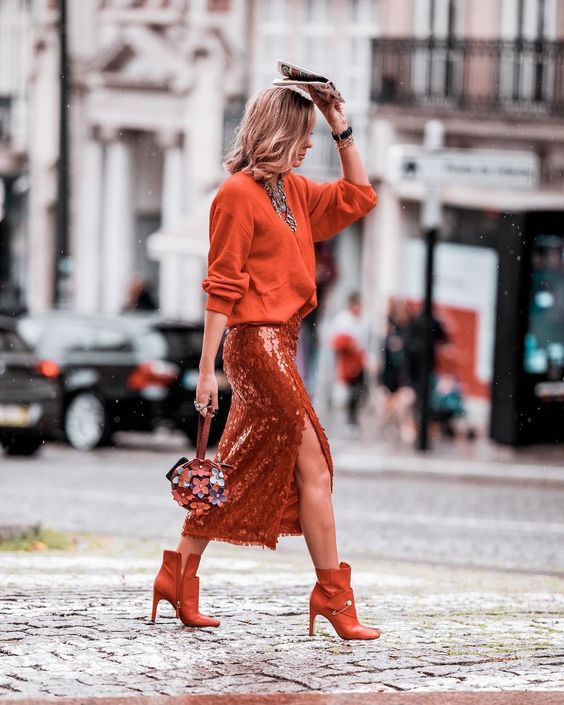 Tone on tone sweaters– Sequence skirts look awesome with matching sweaters. You can go for teddy sweaters as they go perfectly with the blingy texture of the sequence skirt.