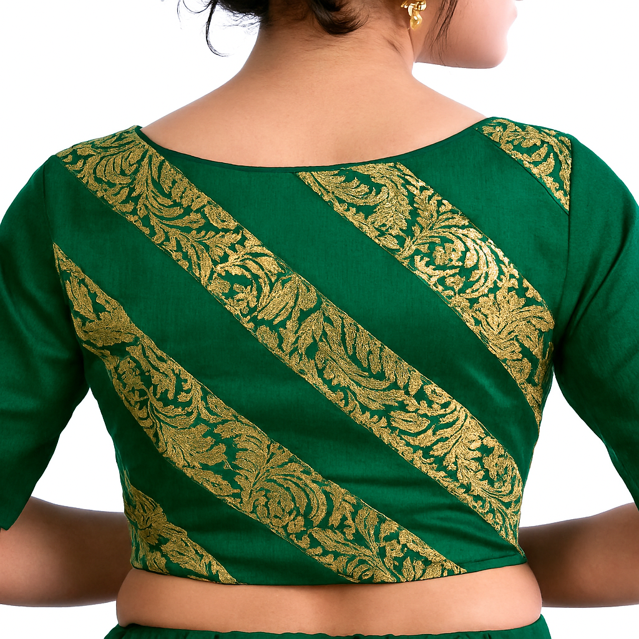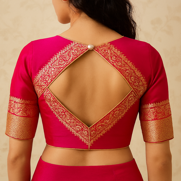 Diamond shape– As the picture suggests, the brocade borders can be easily used to highlight the diamond shape neckline for the back of the blouse.