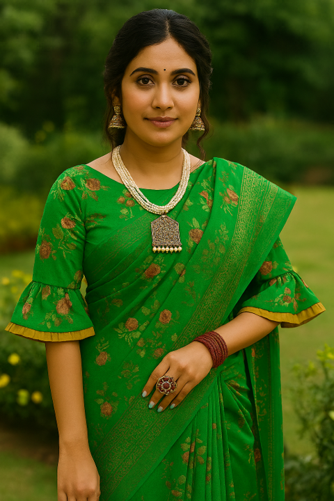 Bell sleeves look really awesome on traditional saree blouse designs. Here are a few inspirational design ideas….