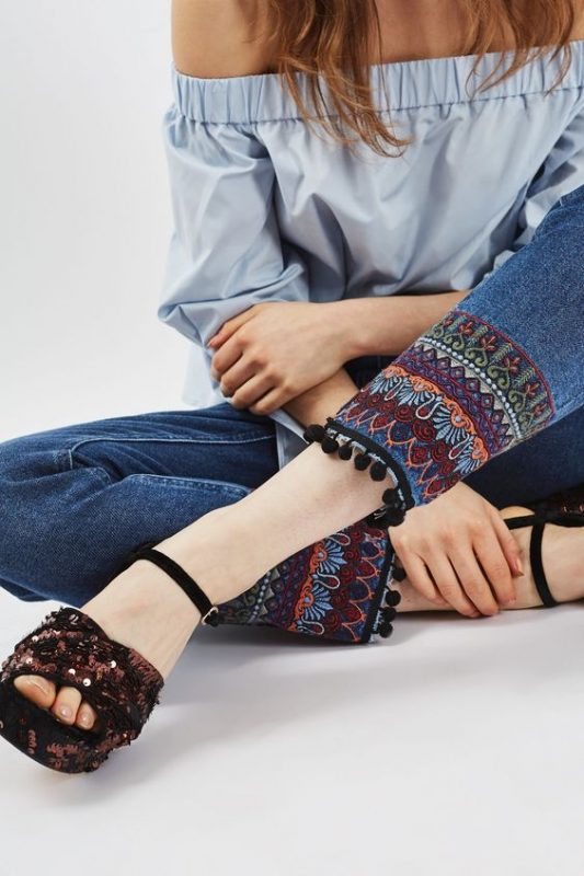 Cutout motifs– Now you can either do this at home or take help of a professional embroider in your locality. The trick is simple, simply trace a motif at the knee area and cut it out with the help of the scissor. Be careful not to cut the back of the jeans while doing so. Now with the help of the needle and embroidery thread you can easily seal the edges of the cutout with a blanket stitch. Or you can also ask a local embroider to seal the edges with the machine embroidery.