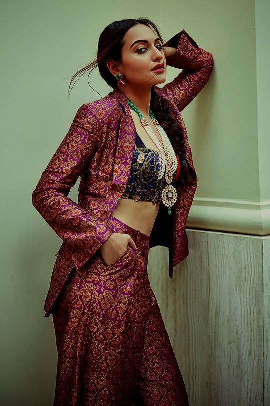 Co ordinate sets– If you are a fan of wearing co ordinate sets then this look is for you. An embroidered bustier top goes so perfectly with the brocade jacket and pants. Skip the neckpiece and go for bold earrings to complete the look.