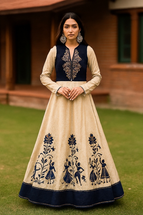 The Waistcoat style– Waistcoat’s look gorgeous and stylish over traditional wear. You can team it up with a plain kurta or an anarkali or even with a simple plain shirt or a T-shirt. Waistcoats in bright colors with colorful embroidery in mirrorwork and tie and dye perfectly justifies the occasion.