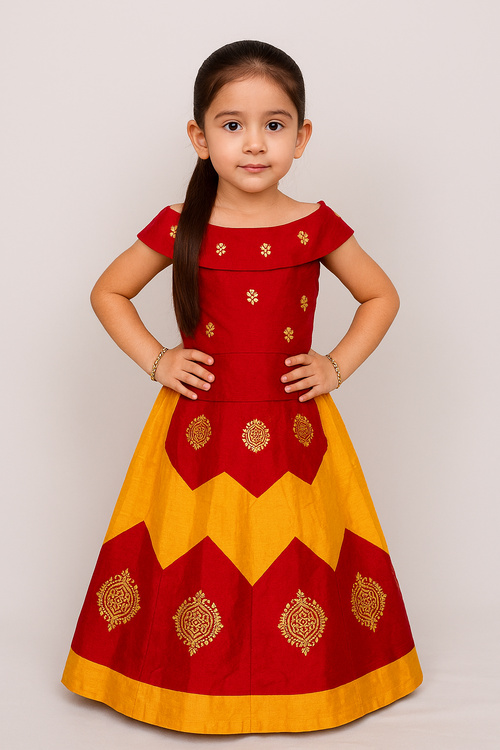 - A-Line lehenga – Simple and flared, perfect for young kids to move around comfortably.