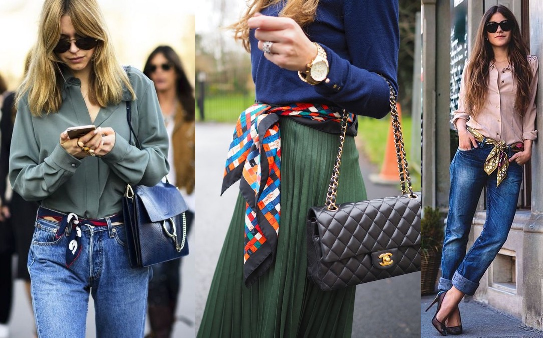 Turn it into a belt– If you want to throw some bright colors to your pantsuit then use a scarf as a belt and it will look striking.