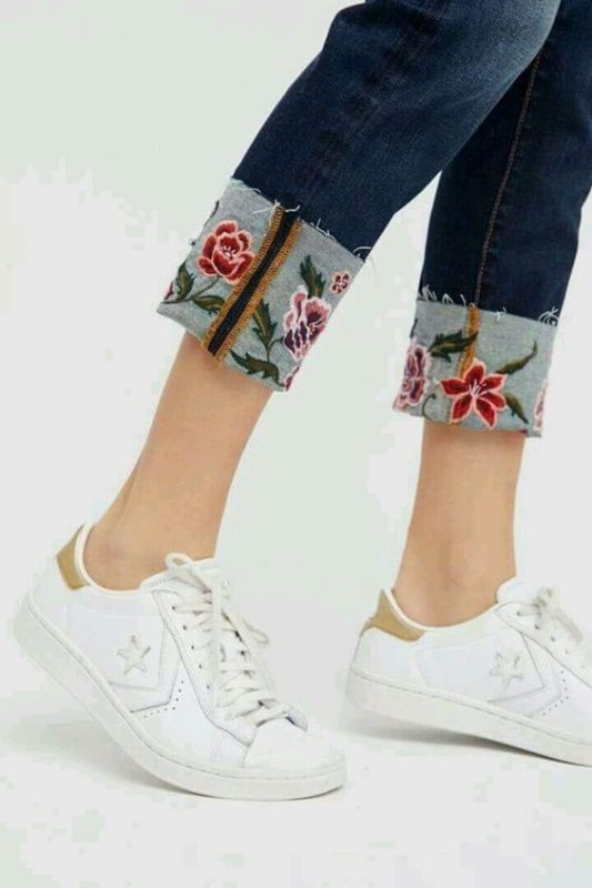 Cutout motifs– Now you can either do this at home or take help of a professional embroider in your locality. The trick is simple, simply trace a motif at the knee area and cut it out with the help of the scissor. Be careful not to cut the back of the jeans while doing so. Now with the help of the needle and embroidery thread you can easily seal the edges of the cutout with a blanket stitch. Or you can also ask a local embroider to seal the edges with the machine embroidery.