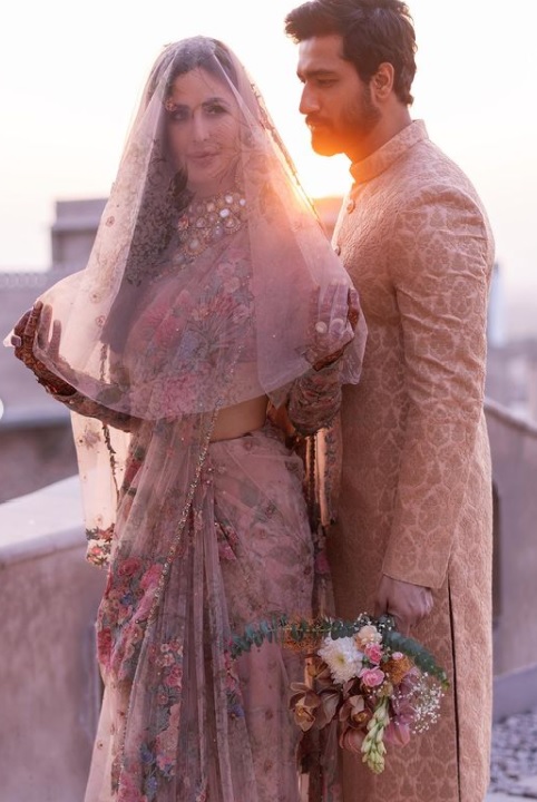 Vicky Kaushal and Katrina Kaif had an intimate wedding at the Six Senses Resort, Fort Barwara in Sawai Madhopur yesterday. The couple choose to wore Sabyasachi outfits and jewelry for their wedding. The couple will give immediate honeymoon a miss as they are committed to resume work soon after the wedding.