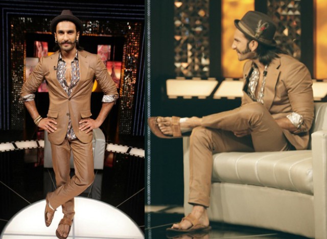 Ranveer Singh has come out as one of the most stylish actors with a great sense of style and fashion wear. And its not just the clothes, its the entire look including hairstyle, footwear and acccessories. He carries his style with so much fun and grace that its hard to find in anyone else except him. Also his perfect energetic and fun attitude adds up to his quirky choices. Here are few looks which we have picked of him wearing suits in various styles……