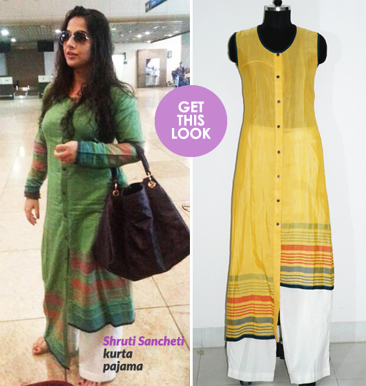 Vidya Balan at airport Wearing Khadi from the designer Shruti Sancheti